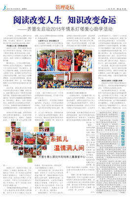 • 閱讀改變?nèi)松? 知識改變命運(yùn) ——齊普生啟動2015年情系燈塔愛心助學(xué)活動 2016-01-15