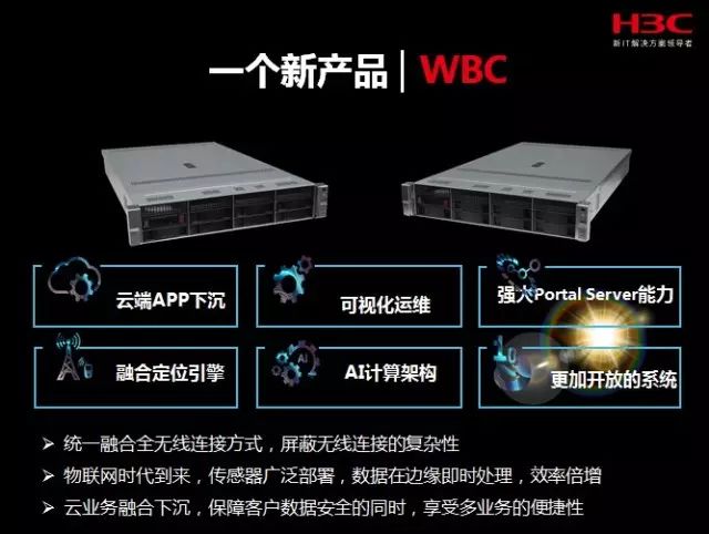 新華三在此次大會(huì)上,正式對(duì)外發(fā)布了WBC(Wireless Beneath Cloud Controller無線多業(yè)務(wù)控制器),作為新華三無線領(lǐng)域的重磅新品面向市場(chǎng),融合多種無線技術(shù),具備六大特性:云端APP下沉、可視化運(yùn)維、強(qiáng)大Portal Sever能力、融合定位引擎、AI計(jì)算架構(gòu)和更開放的系統(tǒng)。面對(duì)萬(wàn)物互聯(lián)時(shí)代,傳感器廣泛部署,WBC不僅可以實(shí)現(xiàn)數(shù)據(jù)在邊緣即時(shí)處理,還可以使得效率倍增;此外,WBC還將運(yùn)維、認(rèn)證、位置大數(shù)據(jù)、SaaS應(yīng)用等業(yè)務(wù)下沉到網(wǎng)絡(luò)中,在保障客戶數(shù)據(jù)安全的同時(shí),更享受多業(yè)務(wù)處理的便捷性。