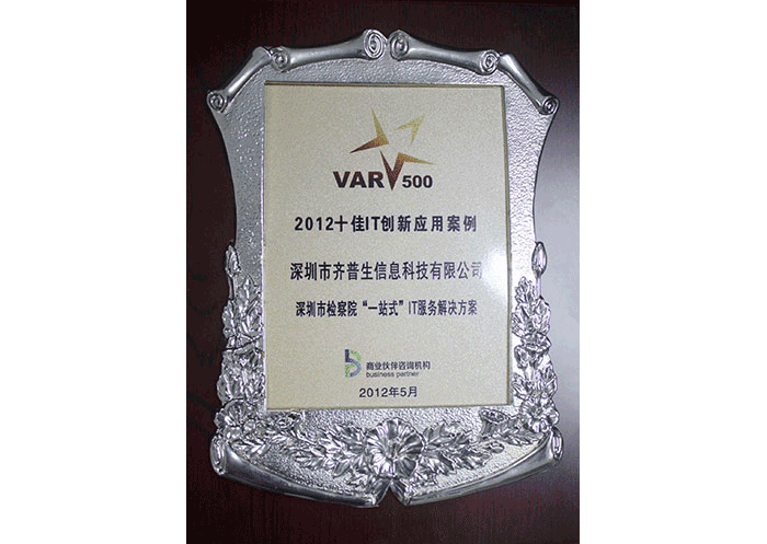• 2012年十佳IT創(chuàng)新應(yīng)用案例(深圳市人民檢察院“一站式”IT服務(wù)解決方案)