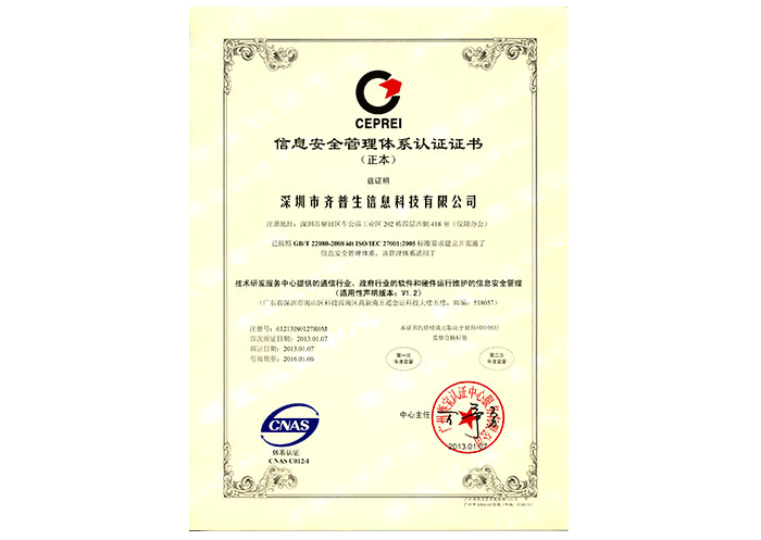 • ISO/IEC 27001信息安全管理體系認(rèn)證證書